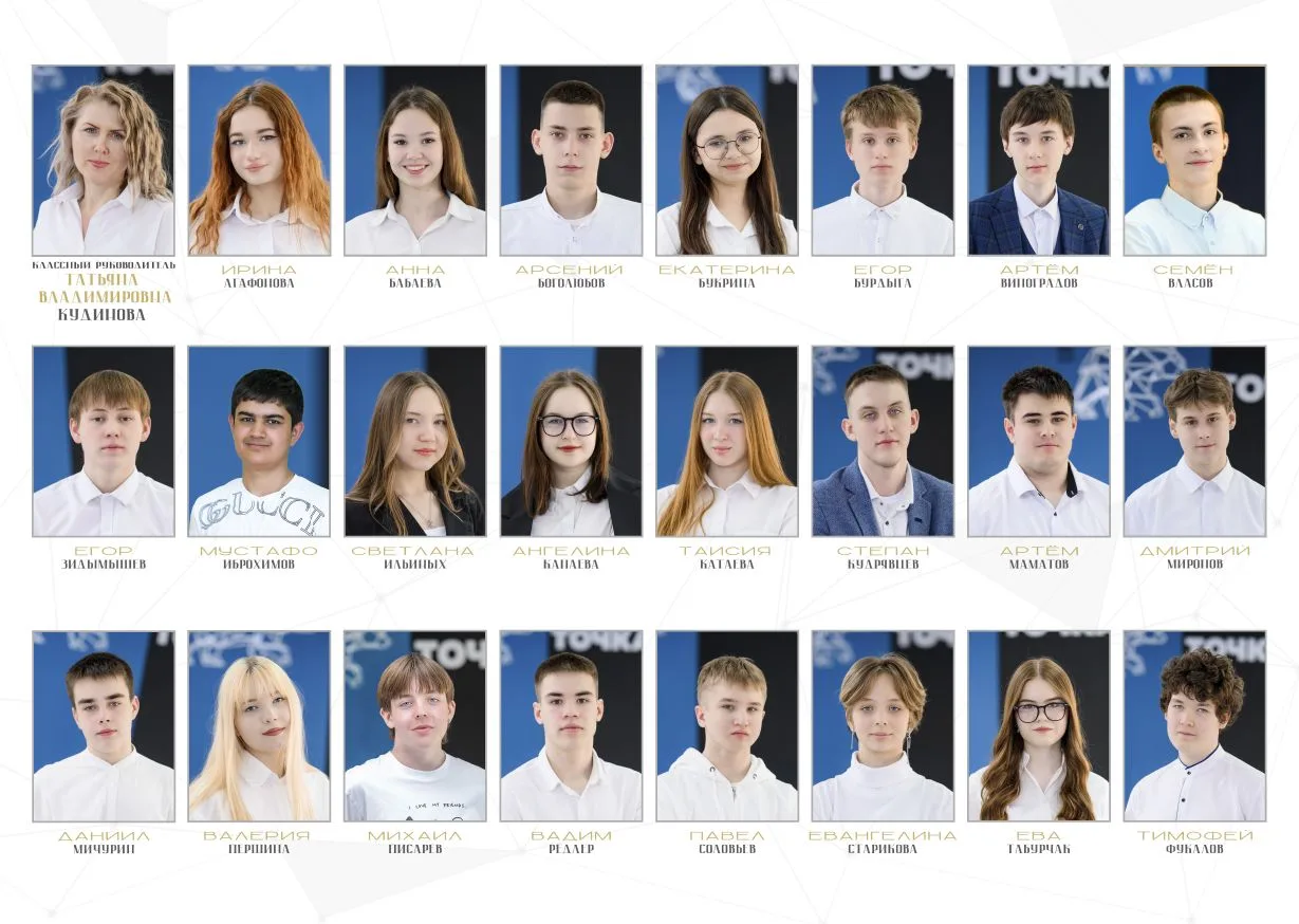 — фотографии всех учеников с подписями имён и фамилий